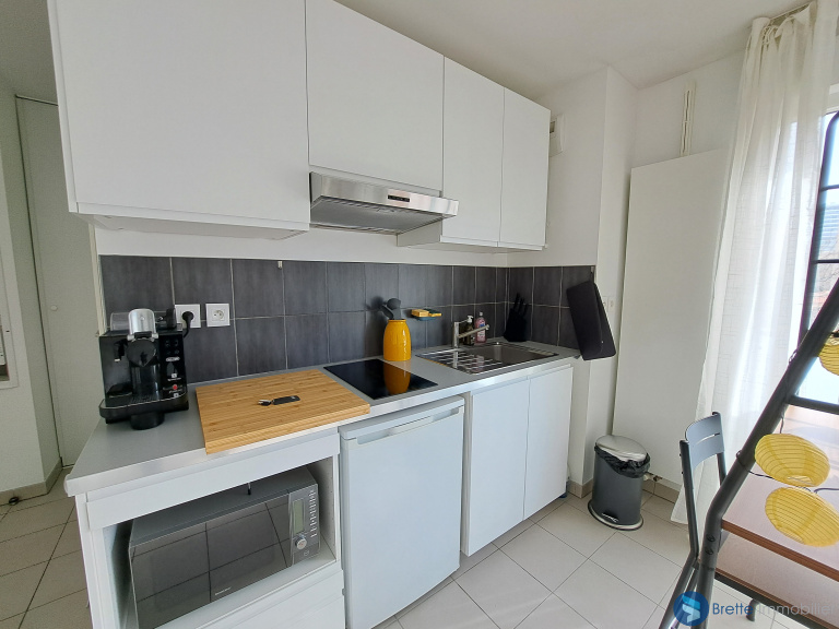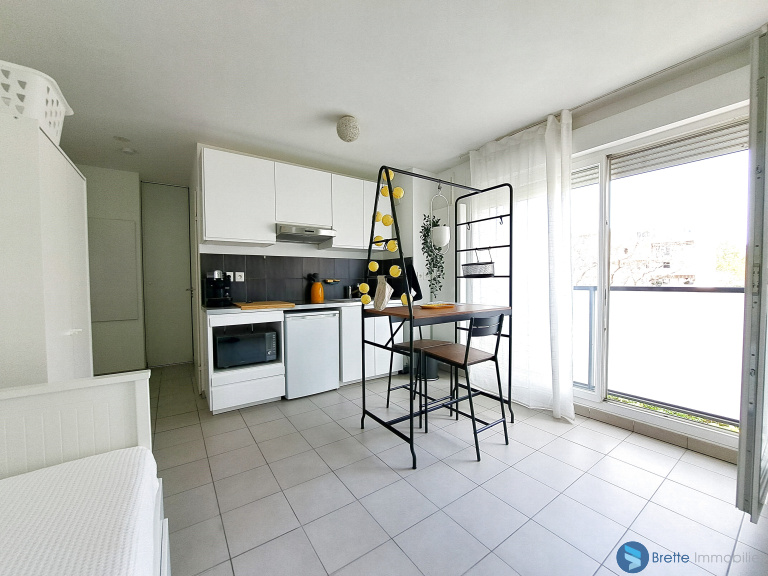 DISPONIBILITE AU 30 AVRIL 2026 - Dans résidence sécurisée de 2018, au 3ème étage avec ascenseur, bel appartement de type studio de 23m² entièrement meublé, équipé et décoré avec goût. Il comprend, une entrée avec placards, une salle d'eau avec wc (et lave linge), cuisine aménagée et équipée ouverte sur la pièce princpale.