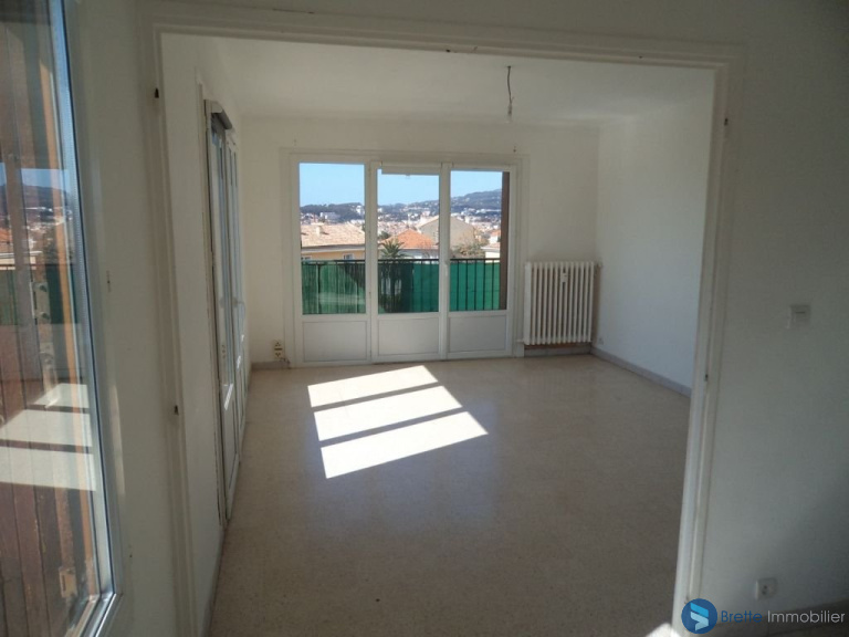 TOULON BAS FARON - Au calme sur les hauteurs de Claret, au dernier étage d\'une petite résidence proche de toutes les commodités, bel appartement traversant T4 avec vue mer sur la rade. Exposition sud, composé d\'un séjour donnant sur grand balcon de 14 m², 3 chambres, cuisine, salle de bains, wc et cave. Local vélo et parking collectif.