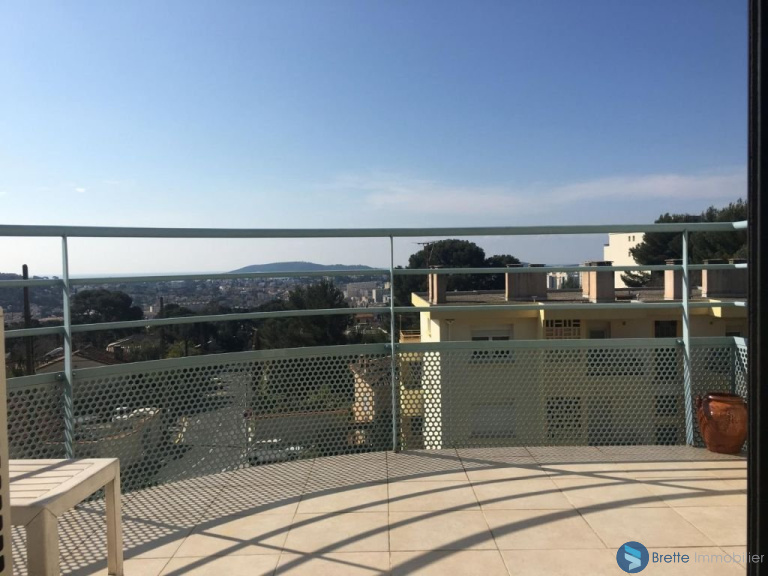 TOULON BAS FARON - Très belle vue mer pour cet appartement T3 de 80 m² en parfait état. Il se compose d\'une entrée donnant sur un double séjour avec cuisine américaine, 2 chambres, salle de bains, wc et cave. Résidence sécurisée de 2008 avec garage et parking privé.