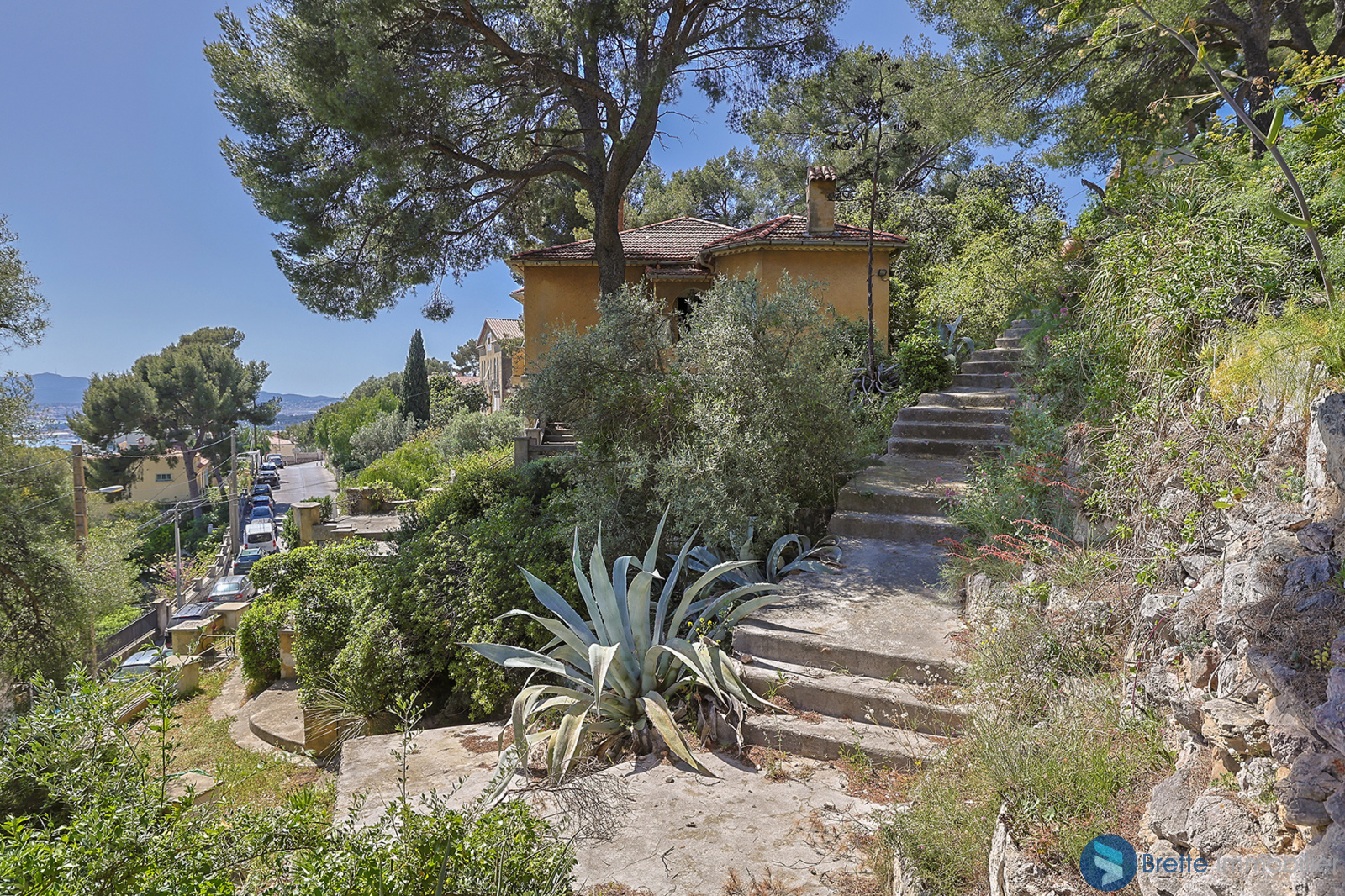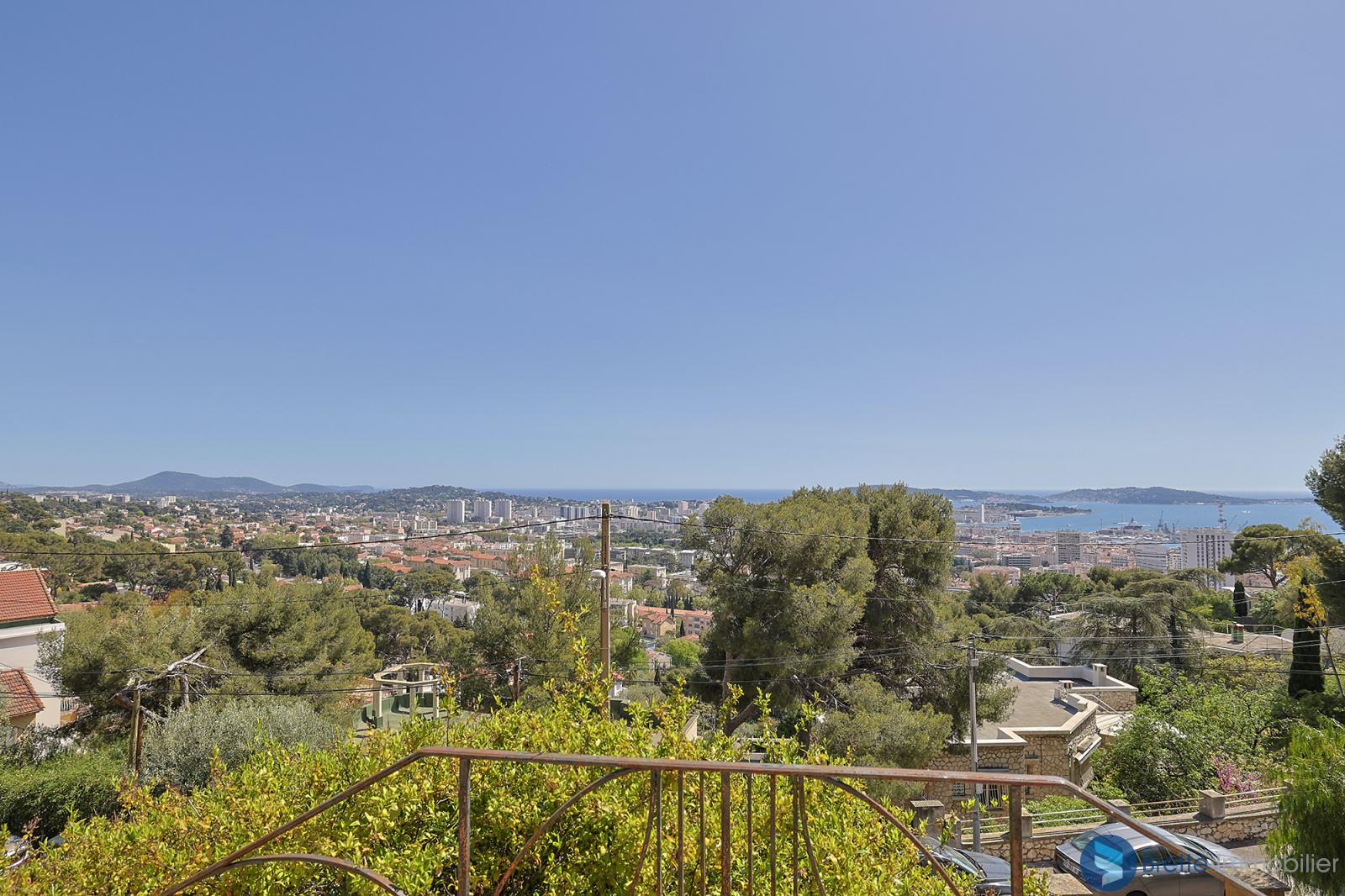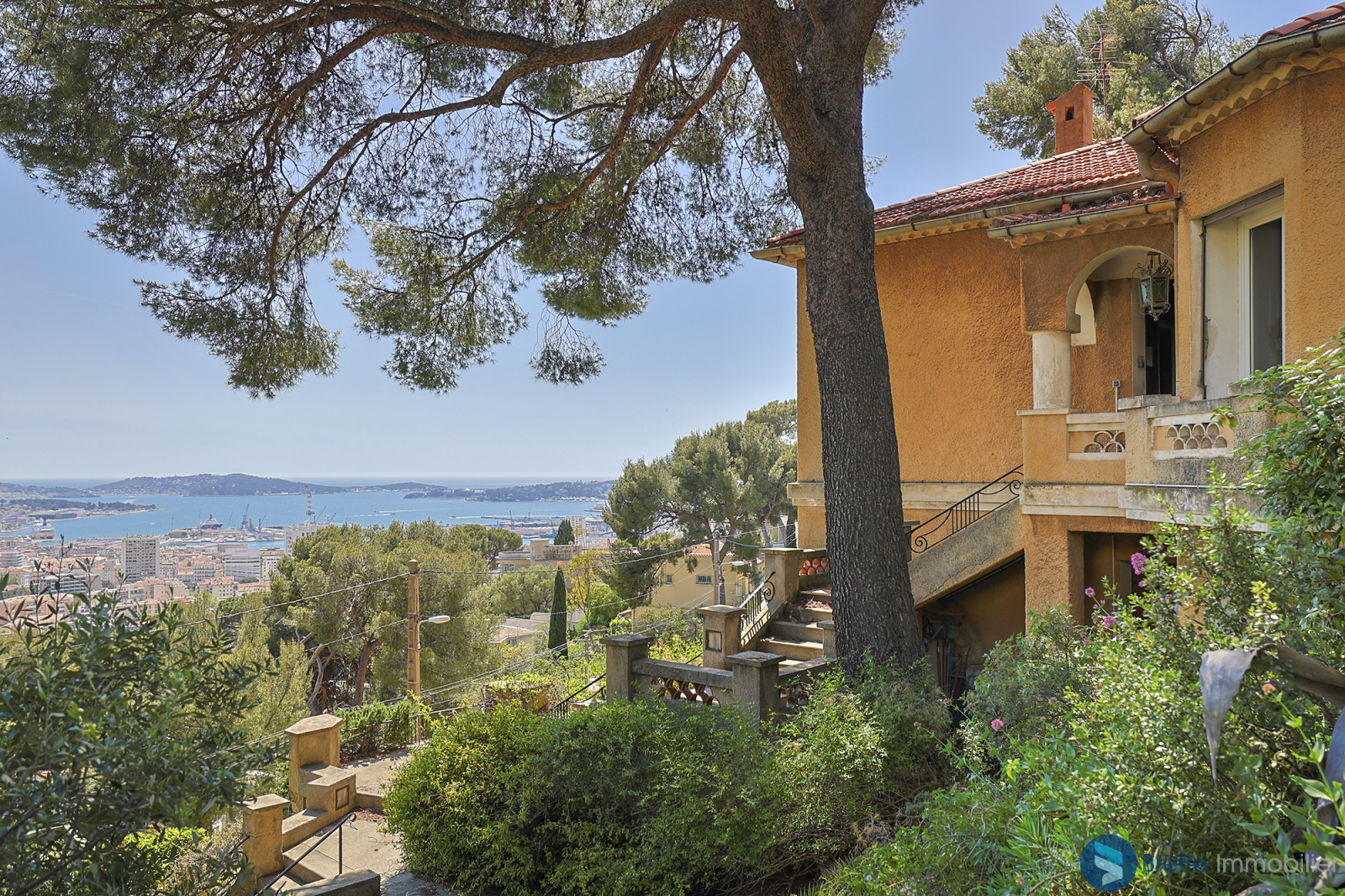Sur les hauteurs du Faron, au calme, maison des années 30 avec une vue panoramique à 180° sur la mer et la rade de Toulon.