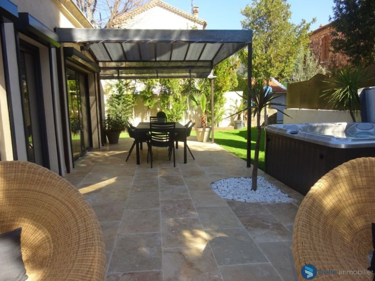 TOULON OUEST - Superbe maison d\'architecte aux prestations haut de gamme offrant 3 chambres, grand séjour donnant sur jardin paysagé avec spa, de plain pied et grand garage dans un environnement calme et boise.