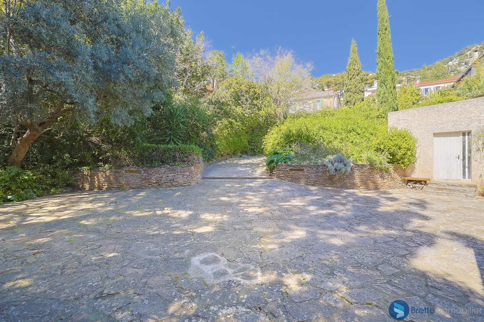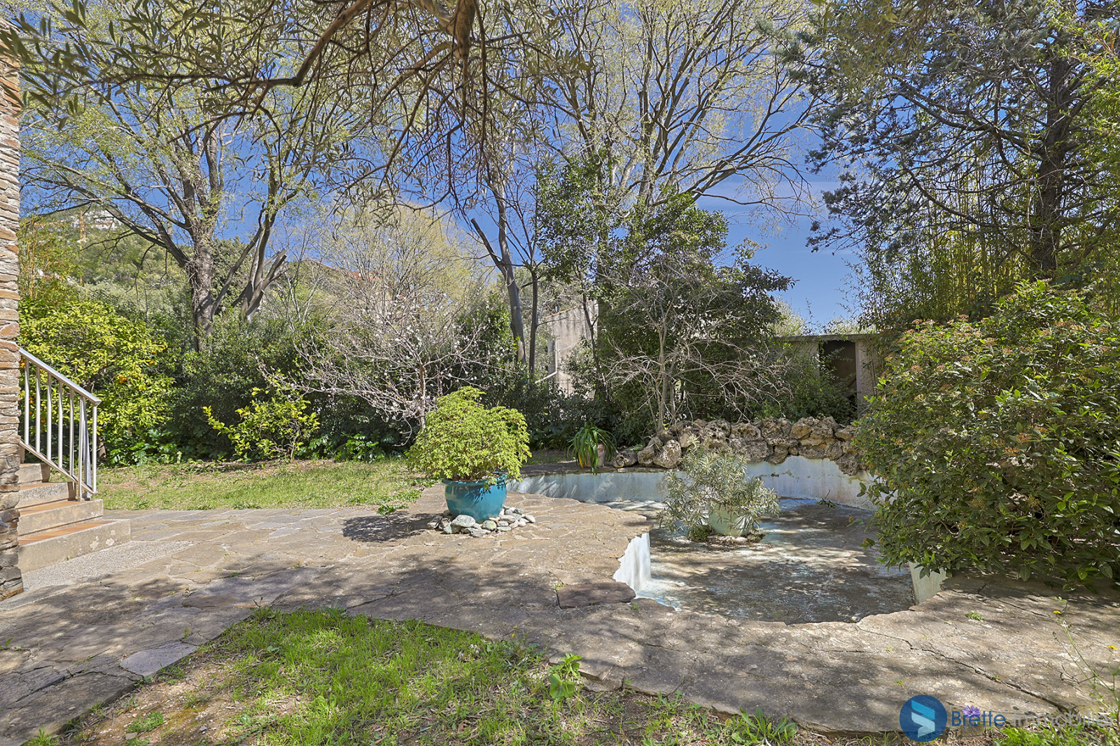 À l’extérieur, le jardin paysager, soigneusement aménagé, offre une atmosphère paisible et intimiste, ponctuée de nombreuses essences méditerranéennes et de massifs fleuris. Vous y découvrirez également un premier bassin décoratif ainsi qu’un second bassin, de plus grande dimension, pouvant être repensé en piscine ou en espace bien-être de type jacuzzi selon vos envies.