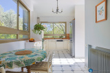 La partie principale s’organise autour d’un vaste séjour d’environ 60 m², baigné de lumière grâce à son exposition plein sud et à ses larges ouvertures vitrées laissant généreusement entrer la lumière naturelle. Une belle cuisine indépendante complète cet espace de vie convivial, avec un accès direct, depuis le séjour comme depuis la cuisine, à une magnifique terrasse en L agrémentée d’un charmant espace barbecue, idéal pour recevoir en toute convivialité.