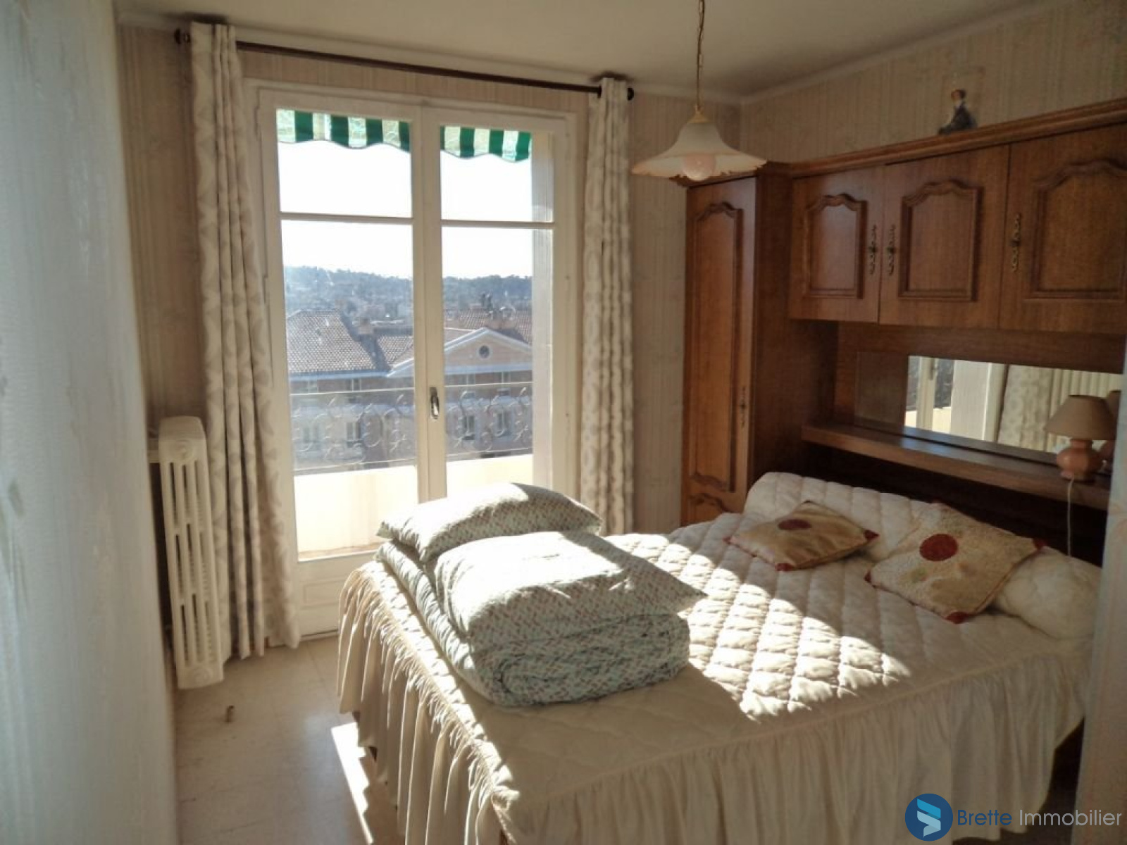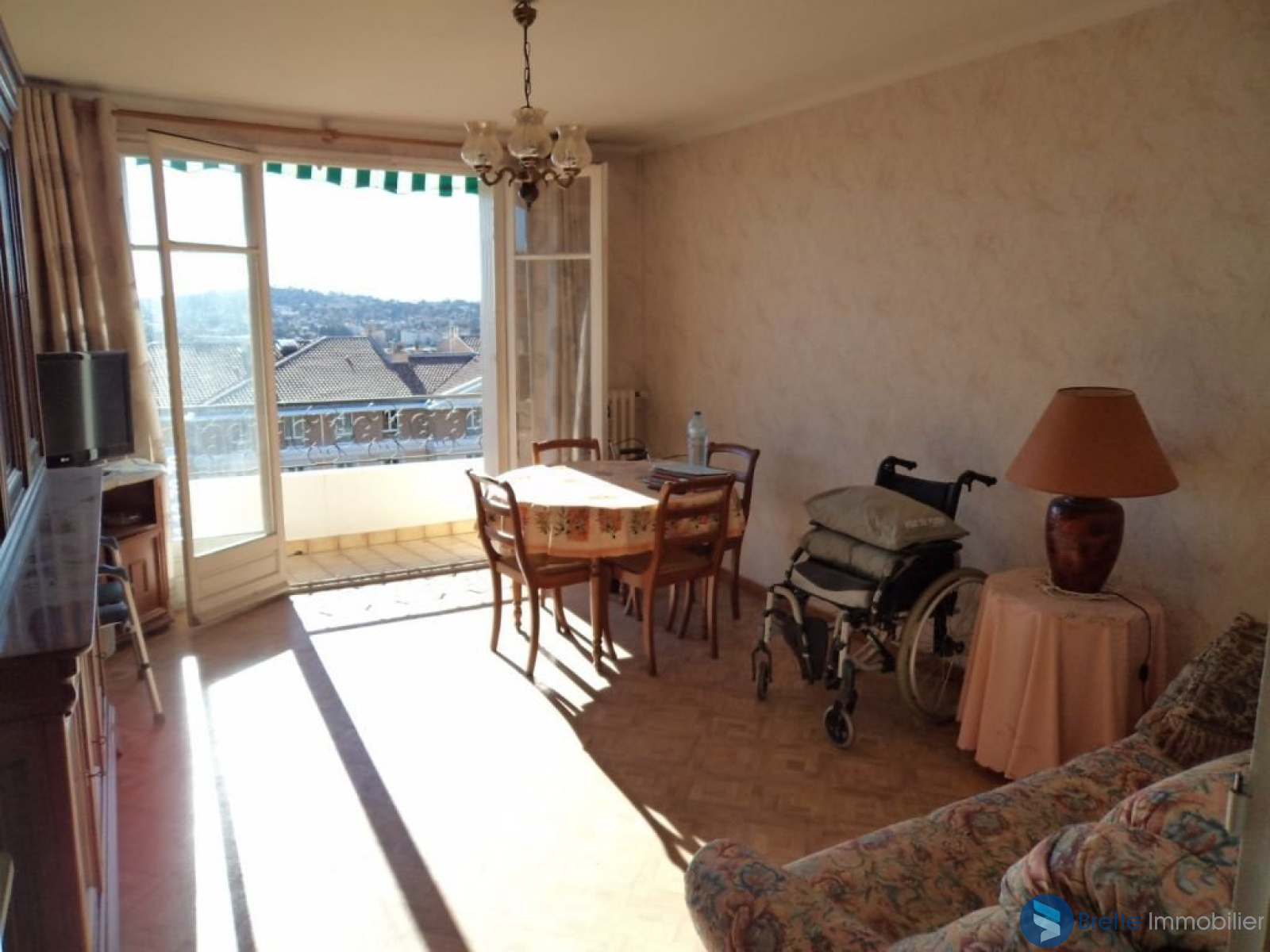 Au dernier étage d\'une petite résidence sécurisée de 8 lots, appartement traversant T3. Expo sud avec belle vue dégagée, balcon, loggia avec vue Faron, cave de 8 m², local vélo, parking et garage de 14 m². Prévoir travaux. A visiter sans tarder !